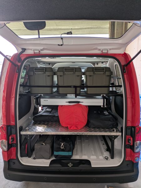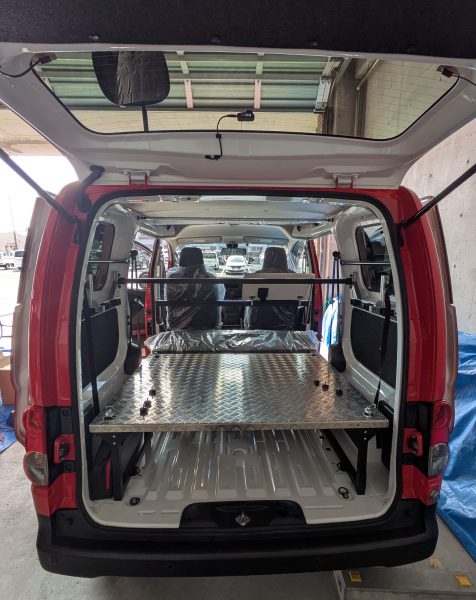 また、後部座席を折りたたむことで荷室がフラットになり、大きな資機材も積載できます。